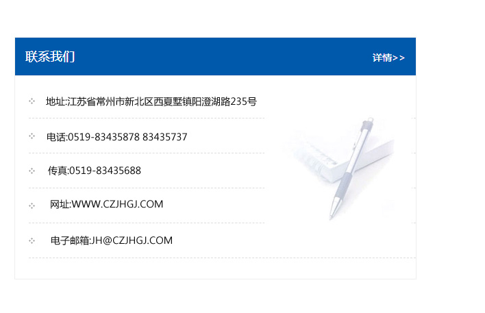 傳真:0519-83435688    郵編:213135    網址:WWW.czjhgj_com.keweimingpian.com    電子郵箱:JH@czjhgj_com.keweimingpian.com